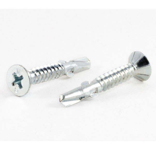 A flat head screw with wings is a type of self-drilling screw that has wings above the drill point. The wings are used to create a clearance hole in the material being fastened so that the screw can pass through without breaking off. Flat head screws with wings are often used to secure wood, plywood, or fiber cement to steel.
